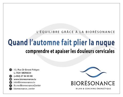 Contactez-nous dès maintenant au (+352) 27 84 93 88 pour un bilan énergétique, ou réservez en ligne via notre page Facebook ou notre site web www.bioresonance.lu.Retrouvez votre énergie, votre sérénité, votre confort — laissez votre corps retrouver sa fréquence optimale grâce à Bioresonance Center.