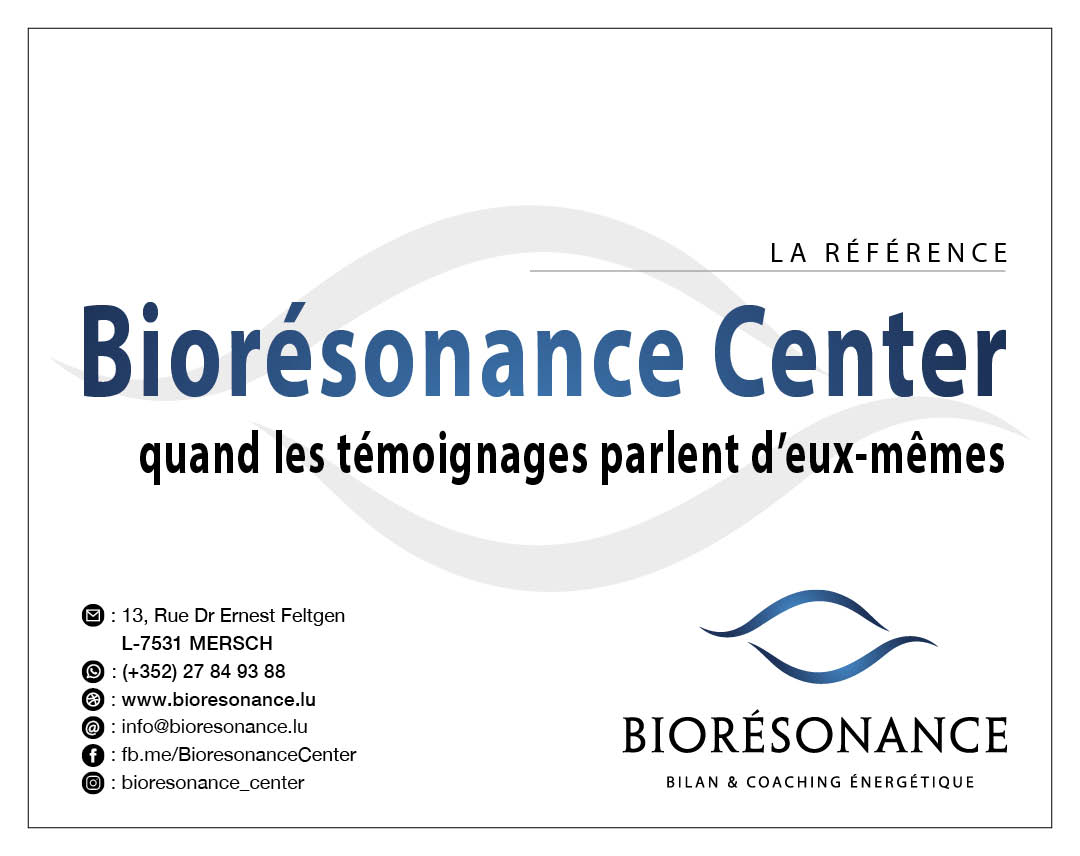 Bioresonance Center est autorisé par le Ministère des Classes Moyennes du Grand-Duché de Luxembourg aux fins d’exercer les activités de bilan et de coaching énergétique, et propose des prestations basées sur les techniques de la biorésonance et de la métatronique. Ces techniques bénéficient des agréments CE et FDA (U.S.A.) ainsi que de l’homologation TUV pour les appareils Métatron utilisés dans le cadre de nos prestations. Bioresonance Center n’a pas vocation à se substituer aux instances médicales habilitées et décline toute responsabilité quant aux conséquences de ses prestations. Bioresonance Center invite expressément ses clients à consulter leur médecin traitant pour toute question relative à un processus thérapeutique les concernant.