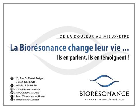 Bioresonance Center est autorisé par le Ministère des Classes Moyennes du Grand-Duché de Luxembourg aux fins d’exercer les activités de bilan et de coaching énergétique, et propose des prestations basées sur les techniques de la biorésonance et de la métatronique. Ces techniques bénéficient des agréments CE et FDA (U.S.A.) ainsi que de l’homologation TUV pour les appareils Métatron utilisés dans le cadre de nos prestations. Bioresonance Center n’a pas vocation à se substituer aux instances médicales habilitées et décline toute responsabilité quant aux conséquences de ses prestations. Bioresonance Center invite expressément ses clients à consulter leur médecin traitant pour toute question relative à un processus thérapeutique les concernant.