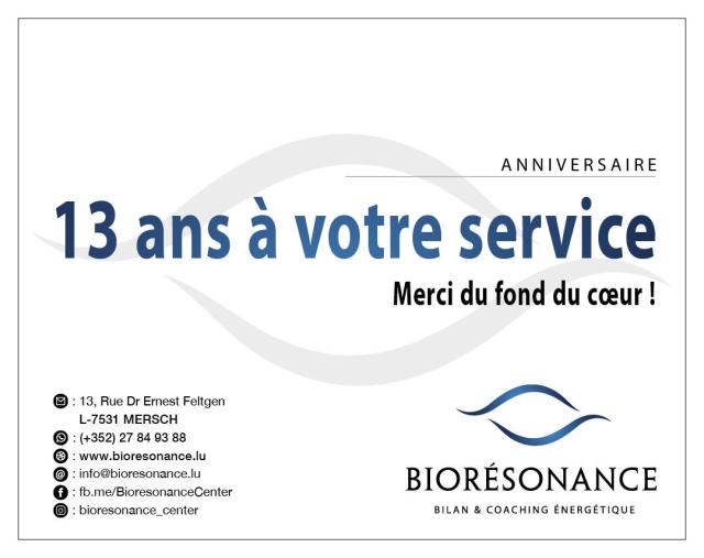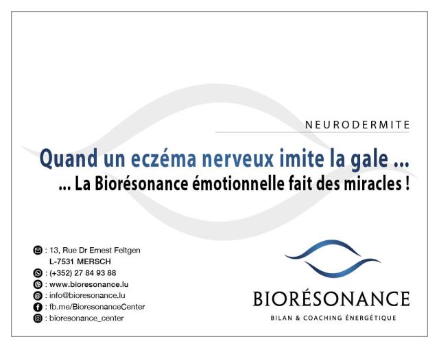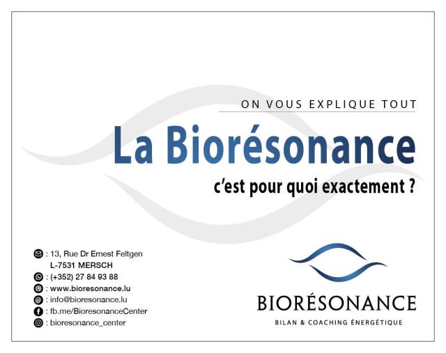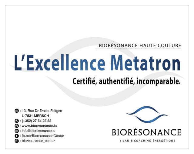 De Bioresonanz-Zenter huet d’Geneemegung vum Ministère vum Mëttelstand vum Grand-Duché fir am Beräich vum Energiebilan an energetesche Coaching ze schaffen. Et offréiert Iech Leeschtungen op der Basis vun dem Bioresonanzverfaren an der Metatronik. Dës Techniken hunn eng CE- an FDA-Erlabnis; doriwwer eraus sinn eis Apparater, déi mer asetze vum TÜV zertifiéiert. De Bioresonanz-Zenter wëllt keng medezinesch Instanzen ersetzen an huet och keng Verantwortung wat d’Follege vun de Leeschtungen ubelaangt. De Bioresonanz-Zenter recommandéiert ausdrécklech senge Clienten, hiren Dokter ëm Rot ze froen, wat hiren therapeutesche Prozess ugeet.